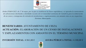 Orden FOM/9/2025, de 27 de mayo, por la que se establecen las bases reguladoras y se aprueba la convocatoria de subvenciones destinadas a Entidades Locales de la Comunidad Autónoma de Cantabria para la elaboración de un censo y cronograma de retirada de instalaciones y emplazamientos con amianto sitos en sus respectivos Términos Municipales.